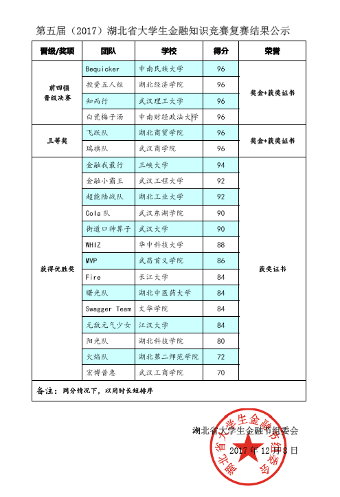 我院由16级国际商务专业刘文彧带队,16级国际商务王颖,16级国际商务汪彪,16级国际商务胡晓丽,16级国际商务毕亚琪组成的瑞旗队在第四届湖北省大学生知识竞赛中获得三等奖的成绩!