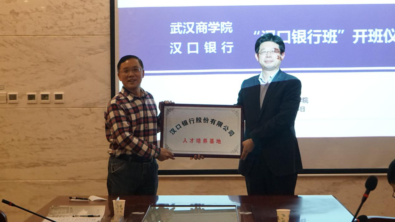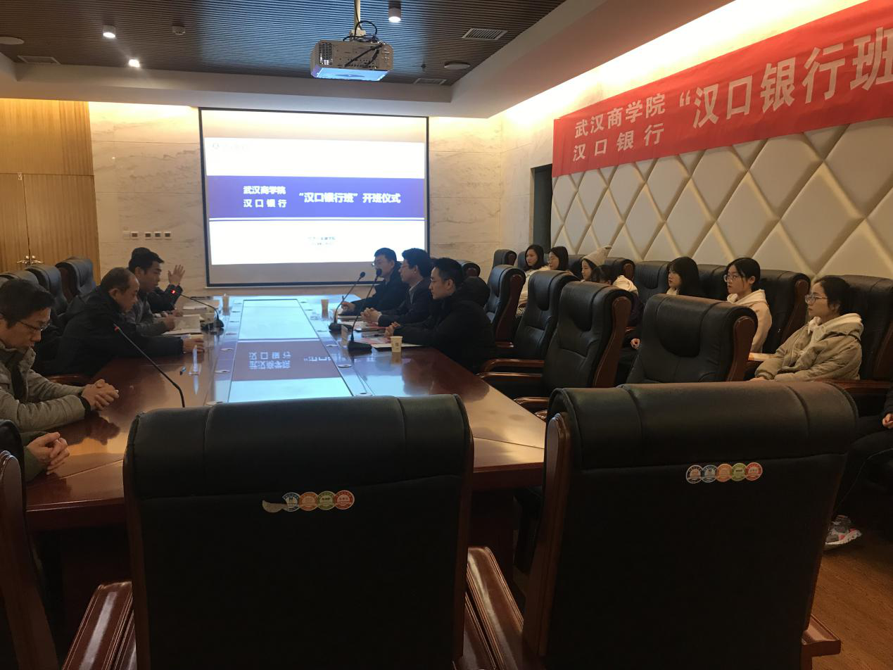 1月3日下午,由经济与金融学院代表学校与汉口银行股份有限公司联合开办的“77779193永利官网汉口银行班”开班仪式在学校校史馆会议室隆重举行。汉口银行总行人力资源资部刘坤副总经理、发展规划部专家许璞和学院领导陈文武院长、王忠宝书记、何少奎副院长及经济与金融教研室教师、首届汉口银行班全体同学参加了开办仪式并聆听了开班第一课。