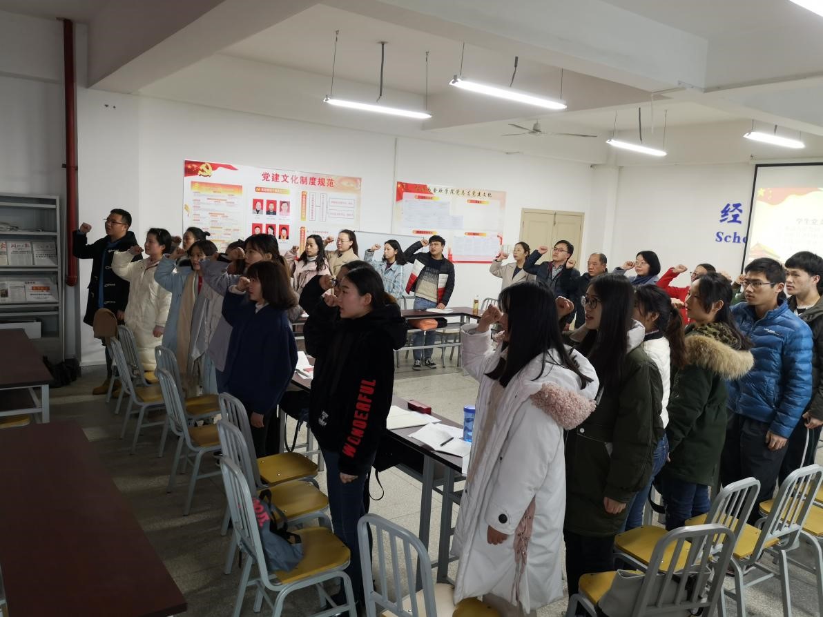 会议开始,学生党支部书记刘寒月带领全体党员重温了入党誓词,坚定不忘初心,牢记使命。