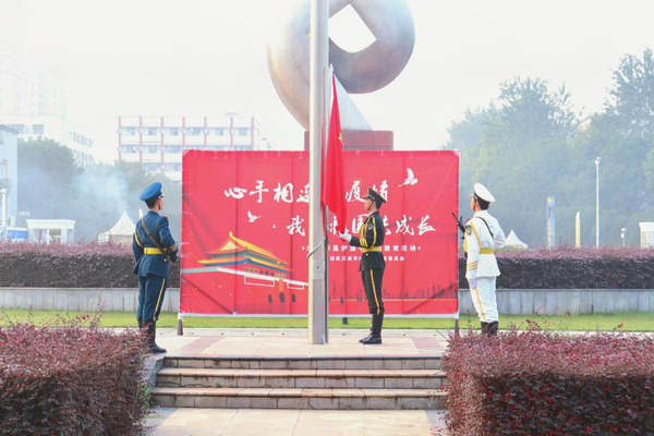 活动从升旗仪式开始,红旗入场仪式顺利完成后,雄壮有力的《义勇军进行曲》响彻校园,全体师生行注目礼,全场弥漫着庄严肃穆的气息。