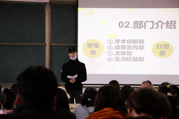 10月23日中午12:30,我院分团委学生会在北二-218举行招新宣讲会。本次会议由学生会执行主席朱芷萱主持,团学全体成员及部分2020级学生参加会议。