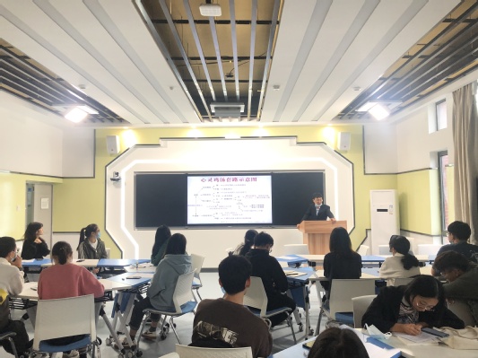 王海涛经理先通过分享自身毕业前后的个人经历,让汉口银行班的同学们对毕业后即将经历的生活做了一个简单的初步构想。讲座主要围绕认知职场、认知情商、认知人才、认知自我以及毕业后面试需要准备的一些注意事项等角度进行专题讲授。活动过程中通过开展生动有趣的自我测试小游戏让同学们更好的认知自我、找准自己的定位。