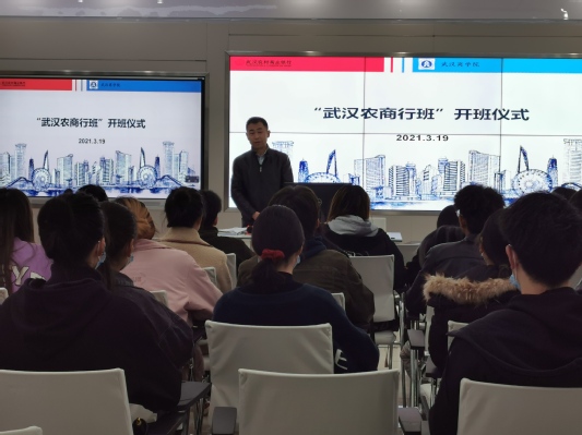 319日下午,我院首届“武汉农商行班”在北五教学楼208举行开班仪式。77779193永利官网院长陈文武、武汉农村商业银行总行人力资源部程丽丽、柏秀魏出席活动。
