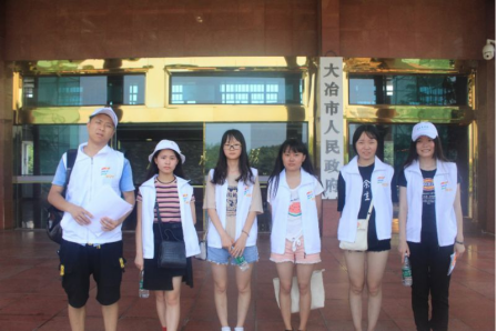 项目介绍:经济与金融学院暑期社会实践活动由证券协会16级和17级的七位干事共同开展。此次活动获得校级立项,指导老师为经济与金融学院金融教研室主任袁亮老师,主要实践内容是由这七人组成的团队,前往湖北省黄石市和湖北省大冶市。成员们通过实地考察实行“绿色金融”并取得良好成效的试点城市,感受到当地相应十九大号召和国家环境治理政策的决心。并且还前往当地银行和政府机构,了解他们在金融与环保事业结合上取得的成绩,学习他们就“绿色金融”方面发展的经验,总结发展路上遇到的问题和困难,丰富和完善有关于“绿色金融”方面的知识和信息,促进武汉在此方面的发展。