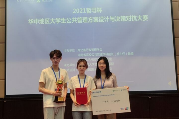5月23日,首届“哲寻杯”华中地区大学生公共管理方案设计与决策对抗大赛闭幕式在武汉科技大学落下帷幕,我院王良咏、陈茜、管月榕代表永利官网与华中科技大学、华中师范大学、武汉理工大学、中南财经政法大学等华中地区44所学校同台竞技,最终取得一等奖的优异成绩。