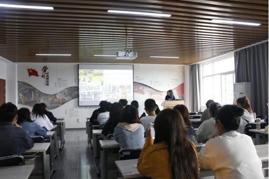 王诗雨老师结合自身的出国留学经历,从衣食住用行等方面作介绍,以幽默风趣的语言讲述了自己在英国的有趣见闻,给同学们分享了许多经典的英国文化,如传统习俗等等,帮助理解文化间的差异。王诗雨老师的分享同学们对出国留学生活有了初步的了解,王老师鼓励同学们要努力学习,争取出国留学,拓宽眼界、拓展格局。
