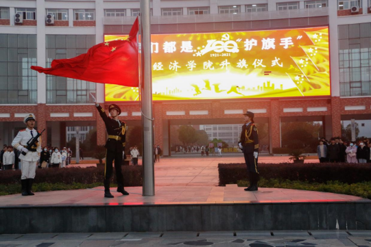 为加强永利官网学生的爱国意识,传承红色基因、增强爱国情怀。77779193永利官网于11月29日在致远广场举行主题为“追忆红色历史,续写时代荣光”的升旗仪式。仪式于7:00正式开始,近400位学生代表参加,2020级经济与金融CFA班梁伊茗主持。