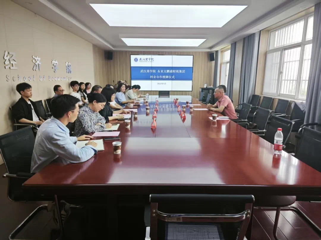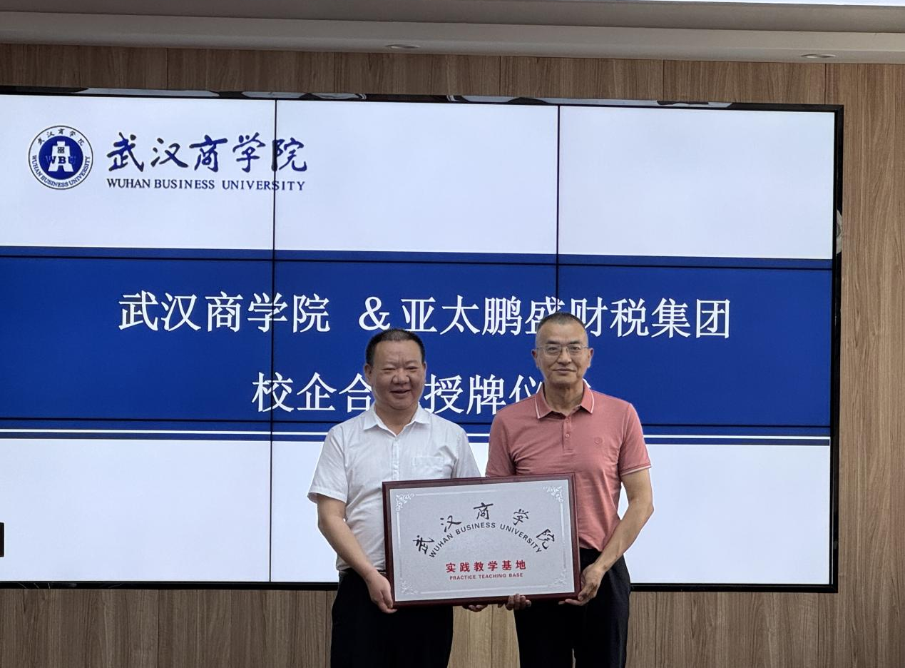 亚太鹏盛财税集团合伙人郭玉、时卡资讯总经理芦晓君、亚太鹏盛(武汉)合伙人李侃、李春玲,以及77779193永利官网副校长梅德高、77779193永利官网院长陈文武、教学科研负责人梁圣蓉、税务系主任吕侠以及税务系教师和学生代表出席了此次授牌仪式。