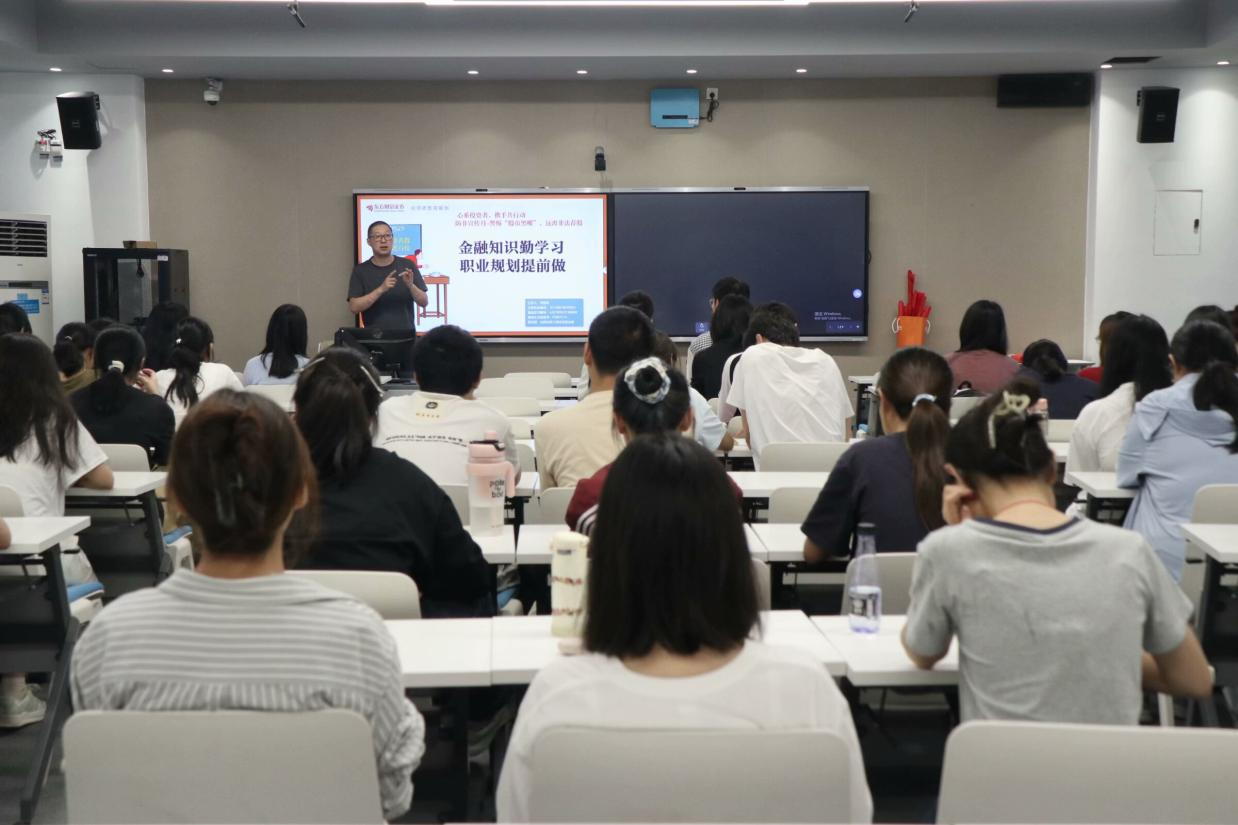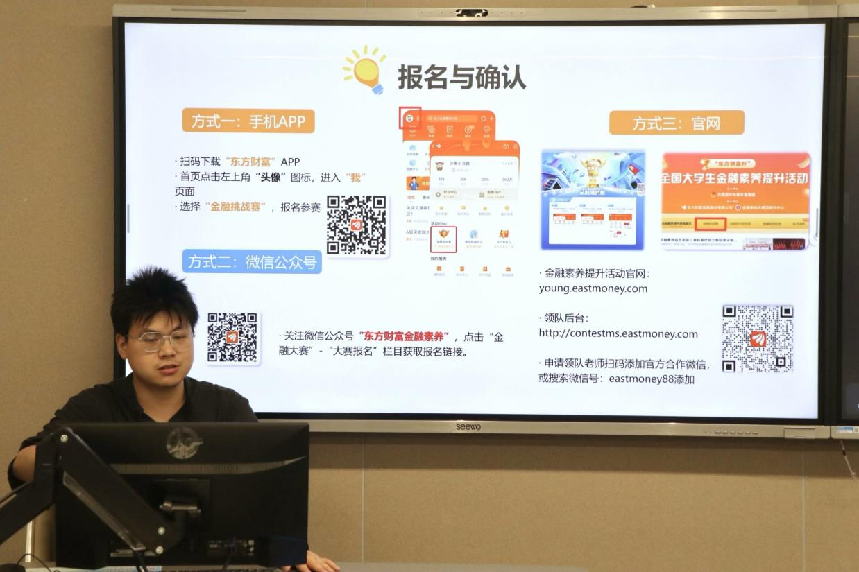 讲座中,主讲人何信科凭借深厚的专业功底,围绕金融基础理论、股票市场发展趋势及投资策略等内容展开系统讲解,通过典型案例剖析与数据解读,为在场同学清晰呈现金融市场运行逻辑。讲解过程中,工作人员同步发放宣传手册,帮助参与者全面了解金融知识。随后,东方财富相关负责人详细介绍第十一届金融挑战赛,从报名时间、参赛流程、竞赛规则到奖项设置等方面进行细致解读,并着重强调赛事的行业认可度与奖项权威性,激发了学生的参赛热情。
